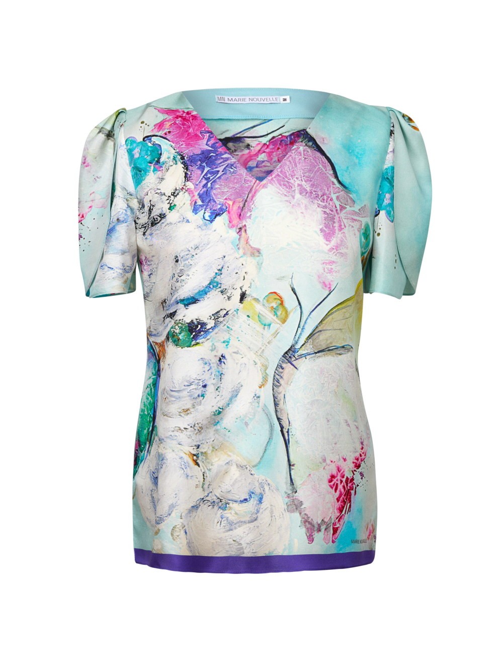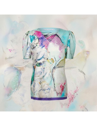 Printed with the symbolic butterfly, this light silk blouse can easily take you to an imaginary garden wonderland. The delicate colors of the print capture every look and enhance your everyday sophistication and femininity.