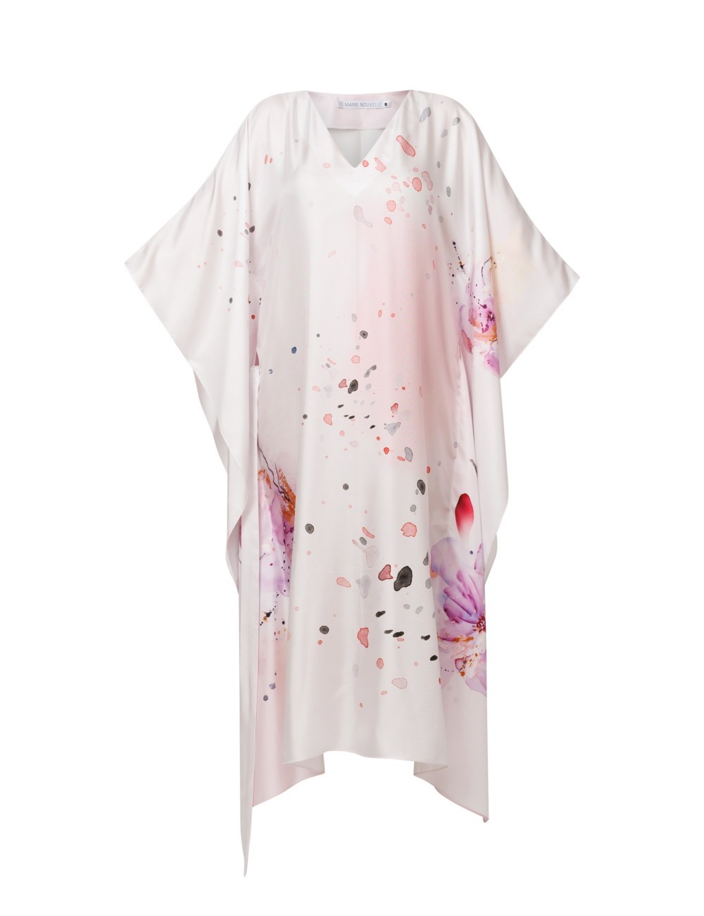 Styled in greek manner, this elegant dress is printed with watercolour art designed especially for Marie Nouvelle.