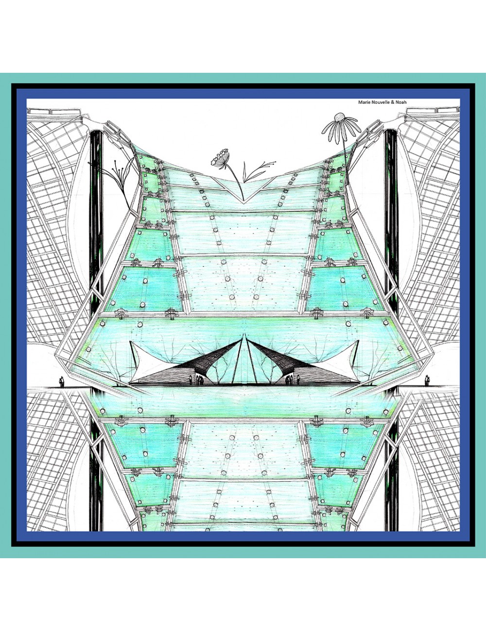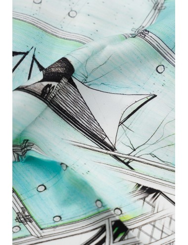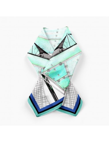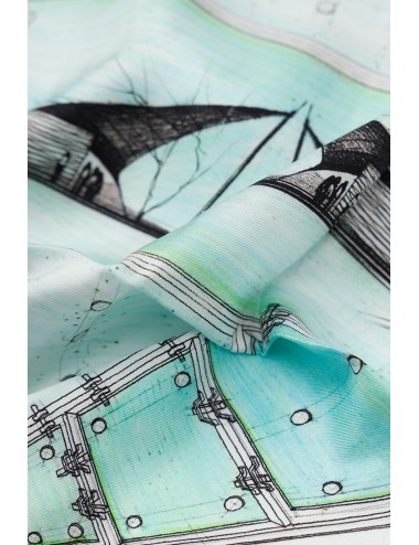 "Weightless Tension" is a pure silk scarf inspired by the visionary architecture of Frei Otto — tensile structures made of fabric and cables, light as air and open to the sky.
