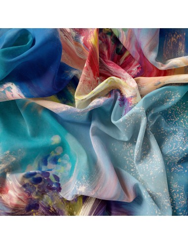Whether draped over your shoulders or styled as a statement accessory, Flowers Whispers is a wearable work of art that adds an air of dream-like elegance and sophistication to any outfit. Its soft silk fabric and vivid design are a reminder of the fleeting yet magnificent beauty that exists in nature, whispering a message of color, life, and joy.