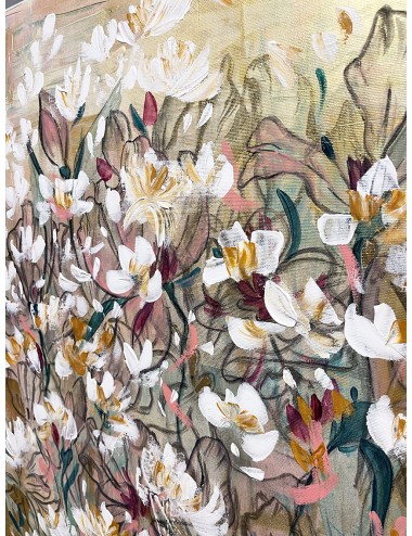 The first layer of the painting preserves the memory of irises, sketched in charcoal like the shadow of a memory.