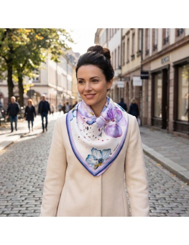 100 % matase twill naturala inspirata din pictura acuarela "Soft Violet Touch".