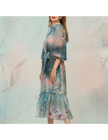 Rochie din voal de matase naturala 100%, transparenta. Maneci lungi, cu elastic.